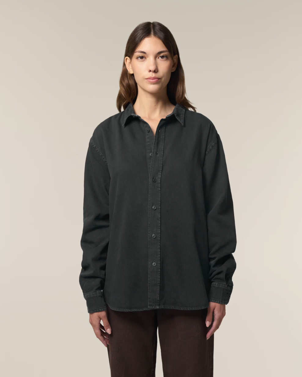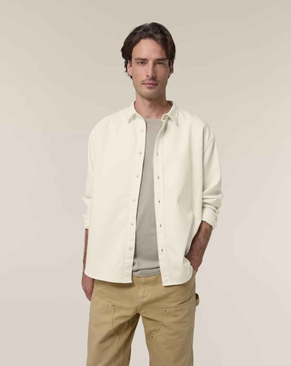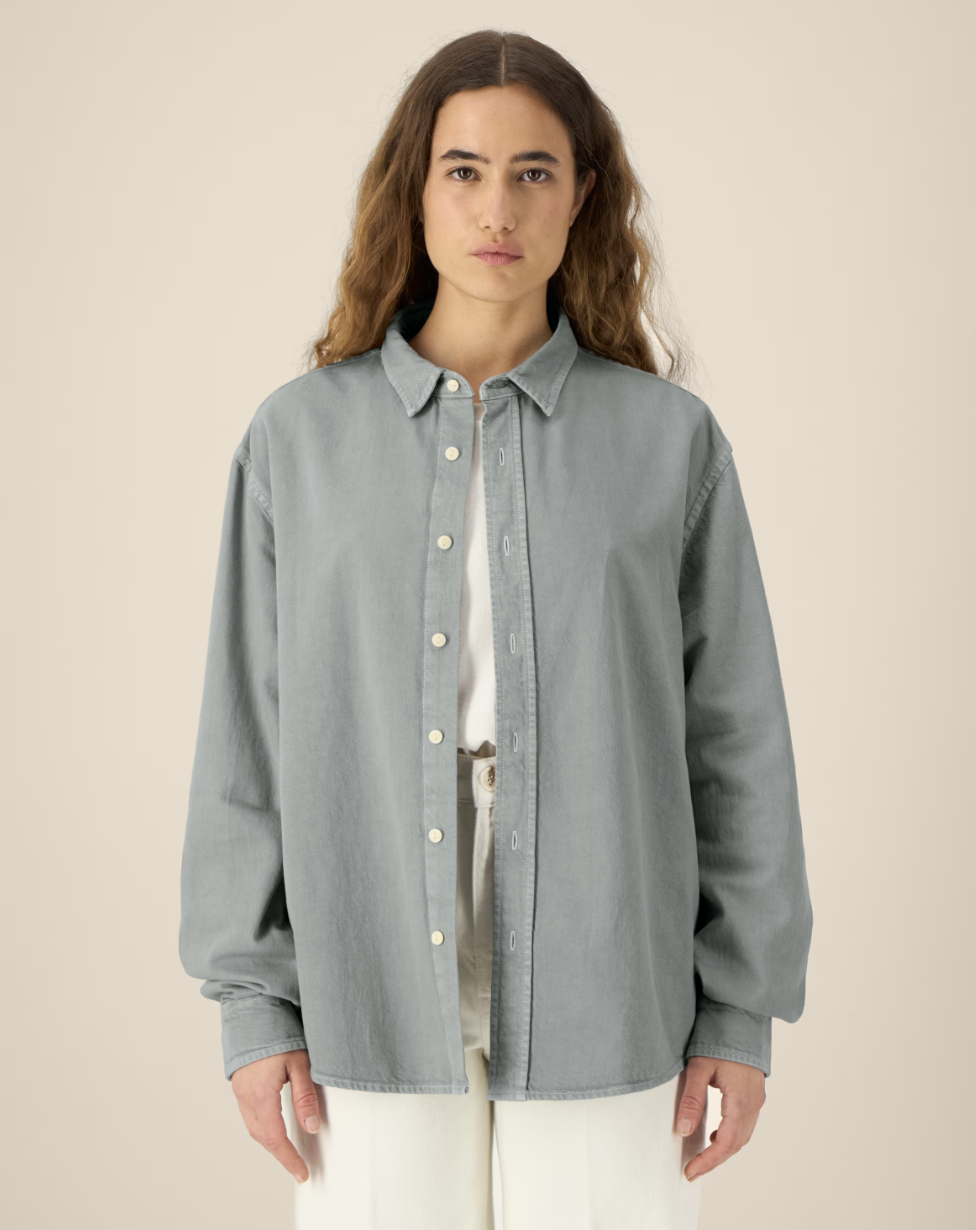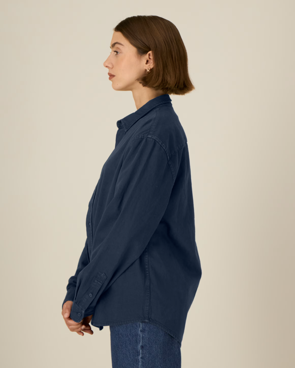 The Worker is a cotton twill shirt, inspired by the workwear trend visible in the retail market. Blending fashion and function, this unisex relaxed fit shirt can be worn alone or layered, and styled for a classic or more streetwear-inspired look. Crafted from 100% organic cotton, the Worker shirt embodies eco-friendly unisex fashion, making it an excellent choice for those seeking sustainable, workwear-inspired blank clothing. Its sturdy 285 gsm cotton twill fabric has a soft handfeel yet is incredible hard-wearing and durable, offering a great surface for any kind of customisation. And with no back pleat, decoration possibilities on this organic cotton workwear shirt are endless.